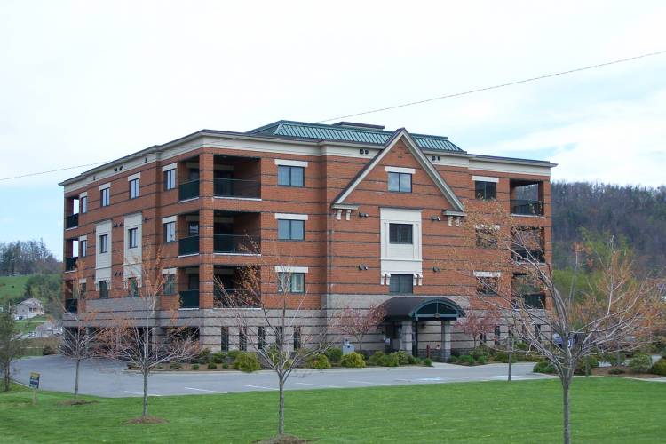 Available NOW!! Awesome 2 bedroom 2 bath, top floor apartment in Boone with a garage space! Large open living room/dining area. Kitchen with updated appliances. Hardwood floors in main living area with carpet in both bedrooms, and tile floors in both bathrooms. TONS of closet/storage space! Private balcony. Gas fireplace in living room. One Year Lease required. NO PETS ALLOWED! Tenant pays all utilities: power, water, sewer, metered propane, cable/internet. Dumpster for resident use only on site. Rent is $2,100/month. Security Deposit $2,100 required.